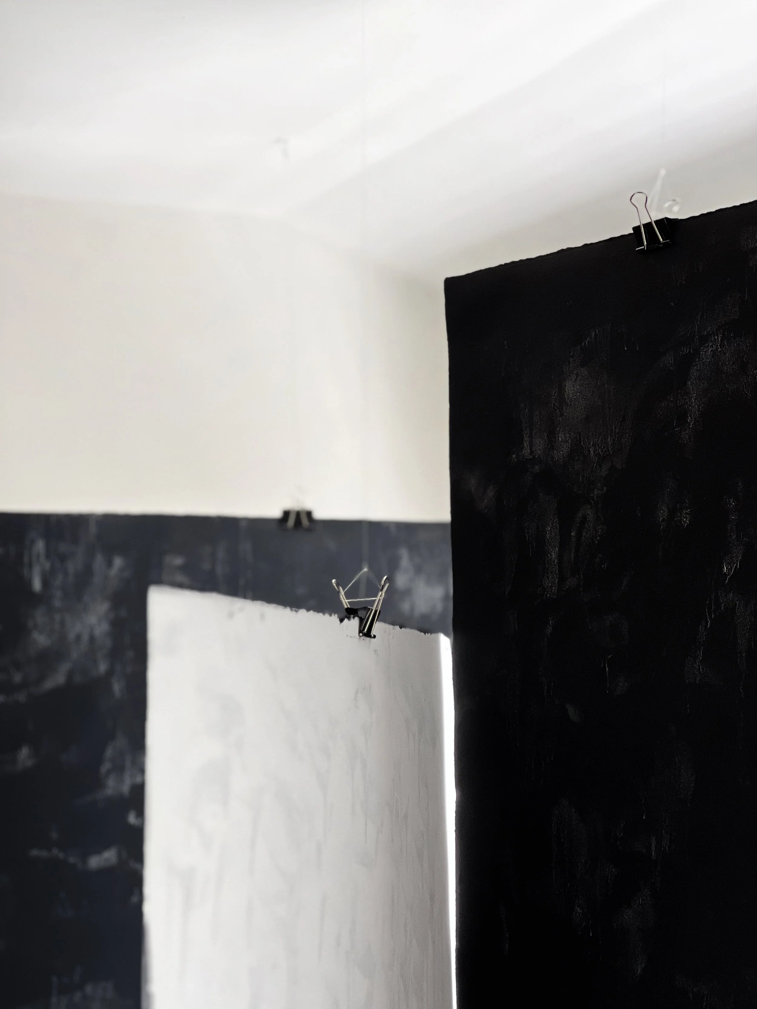 When We Drop Fear is a participatory artwork inviting viewers to engage directly with the artist’s personal memories, visualized as large drawings hanging from the ceiling. Participants are welcome to interact with the drawings by tearing them—using their hands or personal tools—as much or as little as they wish, then use the torn pieces to express their memories related to fear through words, drawings, or other marks. Leaving the piece untouched is equally valid. As viewers participate, the hanging drawings will gradually diminish while accumulating torn pieces on the floor. Those fragments will be transformed into a new body of work titled When We Drop Fear.