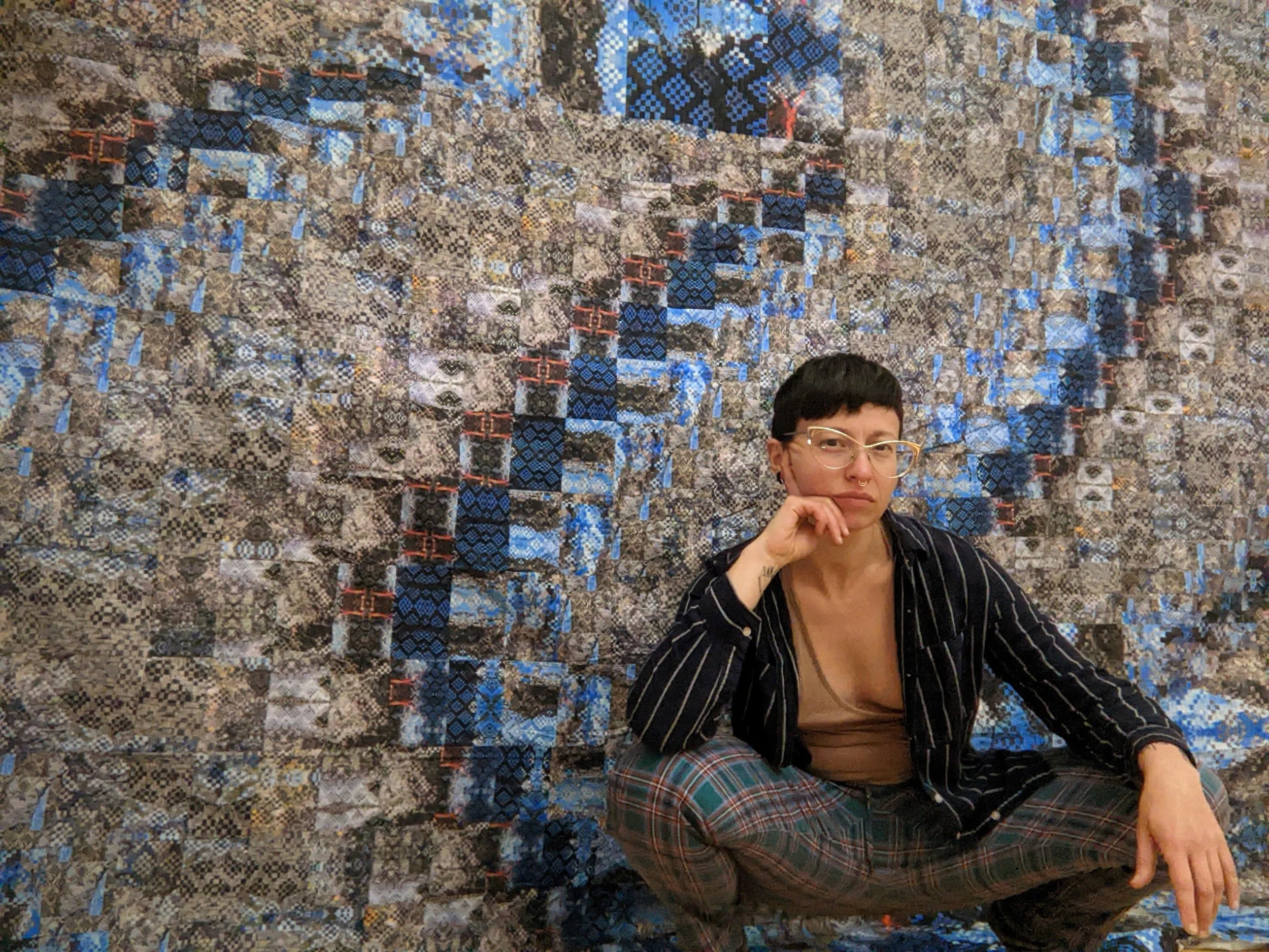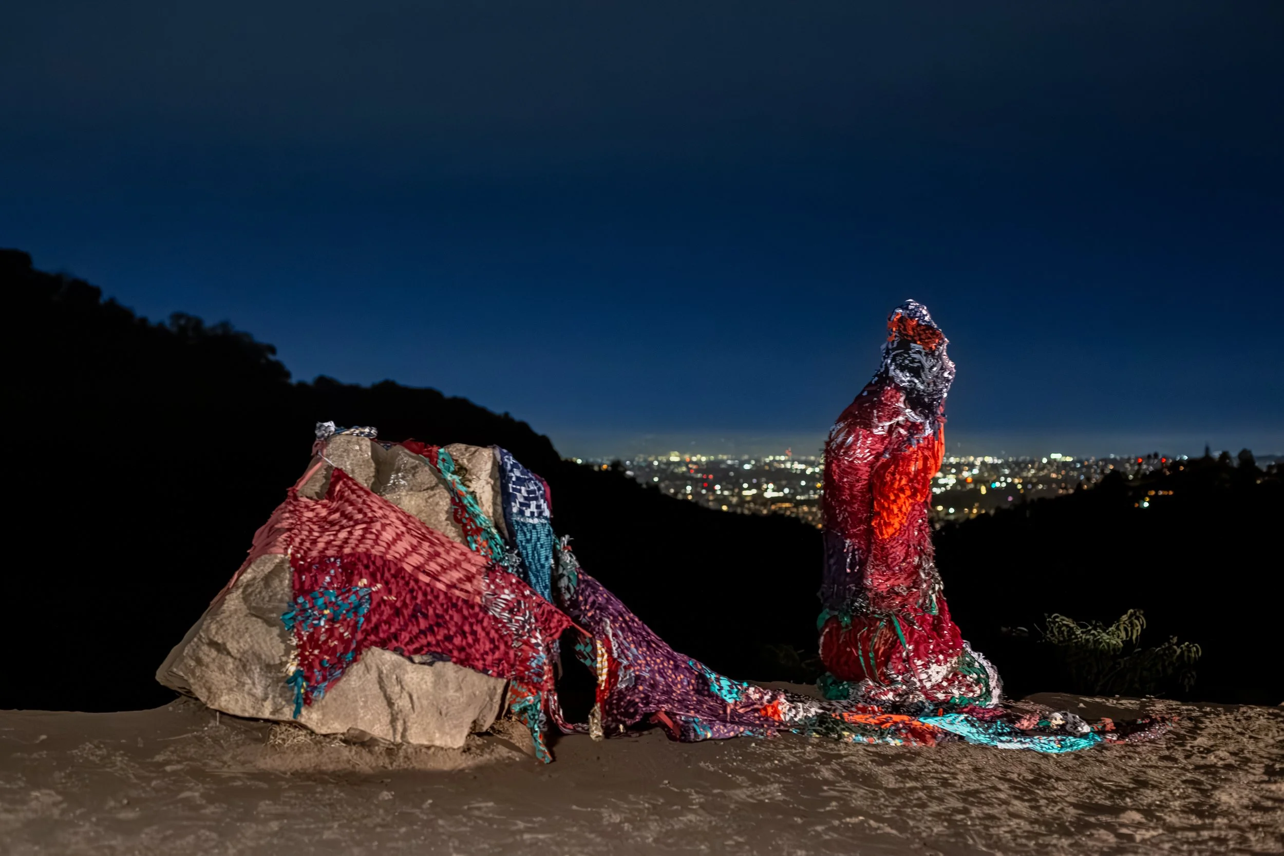 Katie Shanks (they/them) is a transdisciplinary visual artist working across the fields of sculpture, print, installation and performance. Growing up in the high deserts of Southern California, they spent their formative years exploring and learning from the rich and varied landscapes and bustling urban centers of their home state. These experiences instilled a deep respect for the interdependent relationships between beings (human and beyond) and delicate natural systems, while kindling a distrust of the interruptive and often destructive structures imposed societally. This cultivated appreciation and suspicion are foundational to both their location based and embodiment work. Shanks utilizes weaving, stitching, quilting, and other labor-intensive fiber techniques as modalities to interrogate assumed frameworks, deconstruct binary thinking, and nurture new pliable relationships between their varied subject matter and content. Working from a queer ecological perspective through phenomenology and autotheory, they explore ideas of home, growth, transformation, and the construction of self.